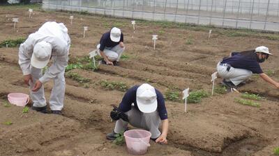 間引きをしたり、除草をしたり、殺虫剤をまいたりと各生徒が自分の農場にあった管理を行いました。