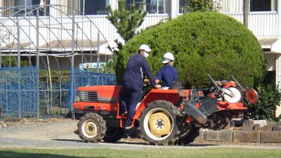 農業機械の授業でトラクタの走行練習と管理機の耕うん実習をしました。
