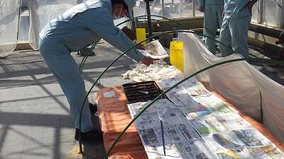 農業と環境の授業で新入生が学習するトマトとキュウリのビニルハウスの準備をしました。