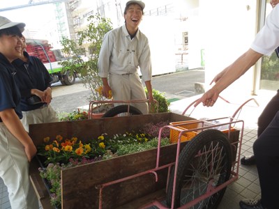 造園科の葉ボタンの芽が出ています。これが大きくなり年末には立派な葉ボタンになり、