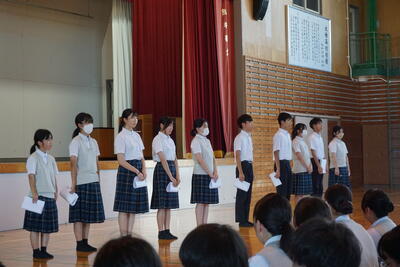 今年度の生徒会執行部の任命式と引継ぎ式が行われました。