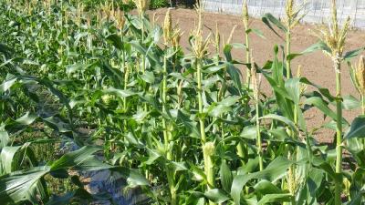 となりではトウモロコシの雄穂、雌穂が咲き始めました。