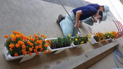 夏休みもきれいな花壇が維持できるように、新しいマリーゴールドの苗を定植し、サルビアの花を摘んでしまいました。