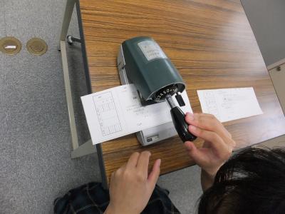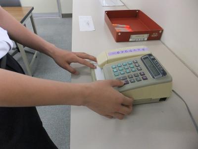 実際に作ってみよう ー 金額は「チェックライター」という手動の道具を使います
