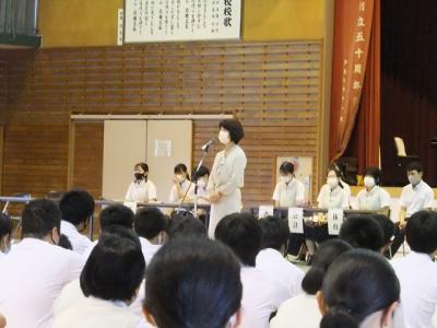 旧生徒会役員には感謝状が、新生徒会役員には任命状が渡されました