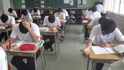 普段は基礎学力を付ける朝の学習時間も、考査前は期末考査に向けての学習時間になりました。