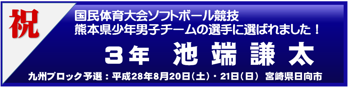 熊本県少年男子チーム」の選手として選出されました。池端くんは8月20日(土)・21日(日)