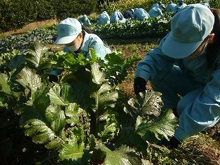 造園科でも「農業と環境」という授業で野菜作りも行い,季節に応じて色々な作物を栽培します。現在は、ブロッコリー・キャベツ・ハクサイ・ダイコンなどの露地野菜を中心に栽培・販売を行っています。