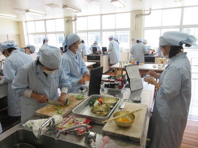 家政科2年生「フードデザイン」での調理実習の様子です。