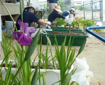 1年園芸科学科の総合実習で、観葉植物の株分けと鉢替えを行いました。