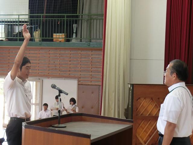 また、夏期休業中に行われる各種大会へ出場する生徒の推戴式も行いました。