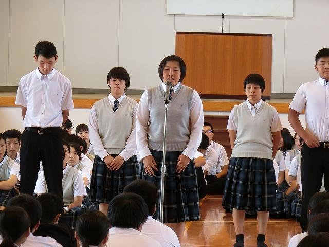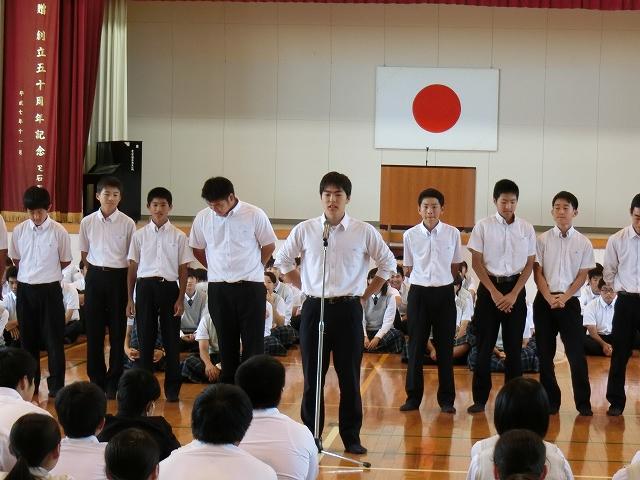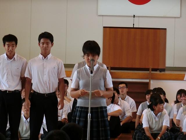 取り組んでいたようです。そして本日は考査後体育館にて高校総体・総文祭に出場する生徒たち