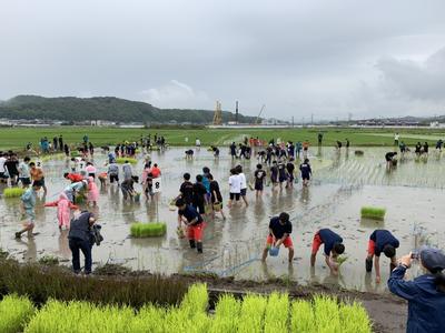 過日、北稜生も多数参加し行われました田んぼアート「田植え会」。