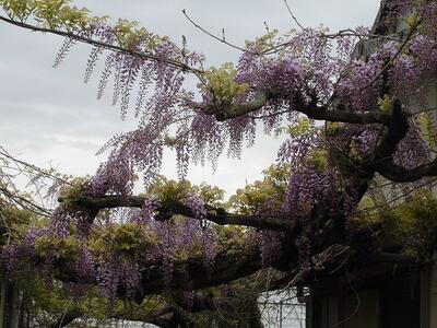 朝からいつ降ってもおかしくないような雲行きでしたが、畜産棟の藤の花が風にゆれていました。