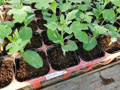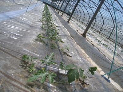 スイカの苗が生長しています。苗はJAから購入した苗ですが、気温も高くなり、大きくなっています。
