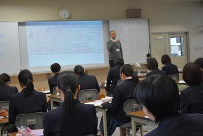 今日の「課題研究」という科目の中で、生徒は社会人基礎力についての話を聞き、