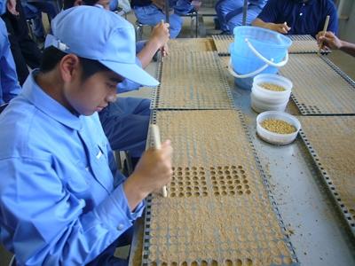 木曜日の3・4限目に園芸科学科1年生がイネの種まきを行いました。セルトレイの1つの穴に、イネの種子を3粒ずつ丁寧にまきました。