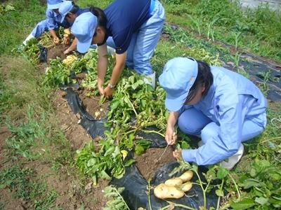 金曜日の5・6限目に園芸科学科1年生がジャガイモの収穫を行いました。いっぱい収穫できました!収穫したジャガイモは販売します。