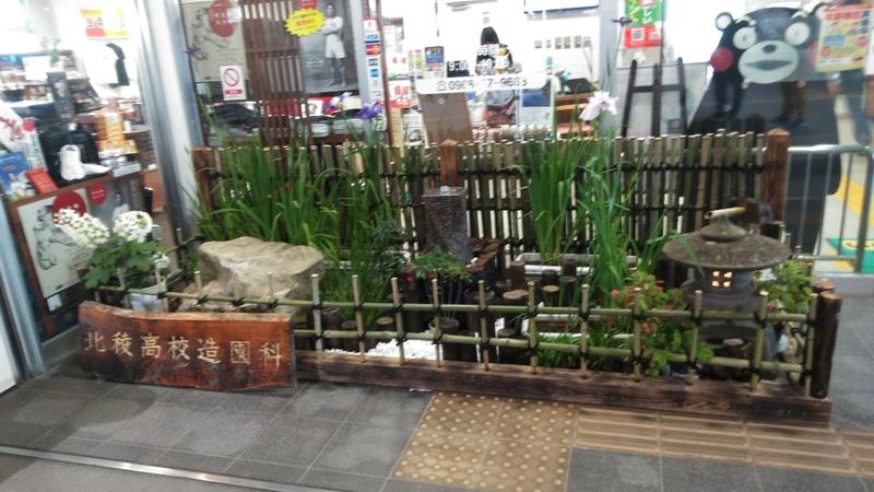 北稜造園科の生徒達が頑張って作成した箱庭です。まずは新玉名駅でこの箱庭をご覧いただき、