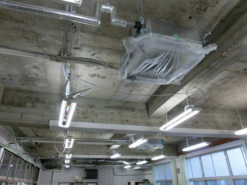 そこで、この秋からようやく空調設備の改修工事が始まりました。会議室や職員室等の天井が