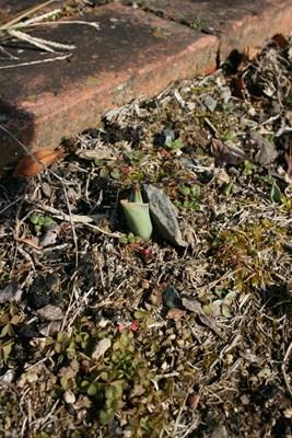 まず、石ころを持ち上げ芽を出したチューリップ。