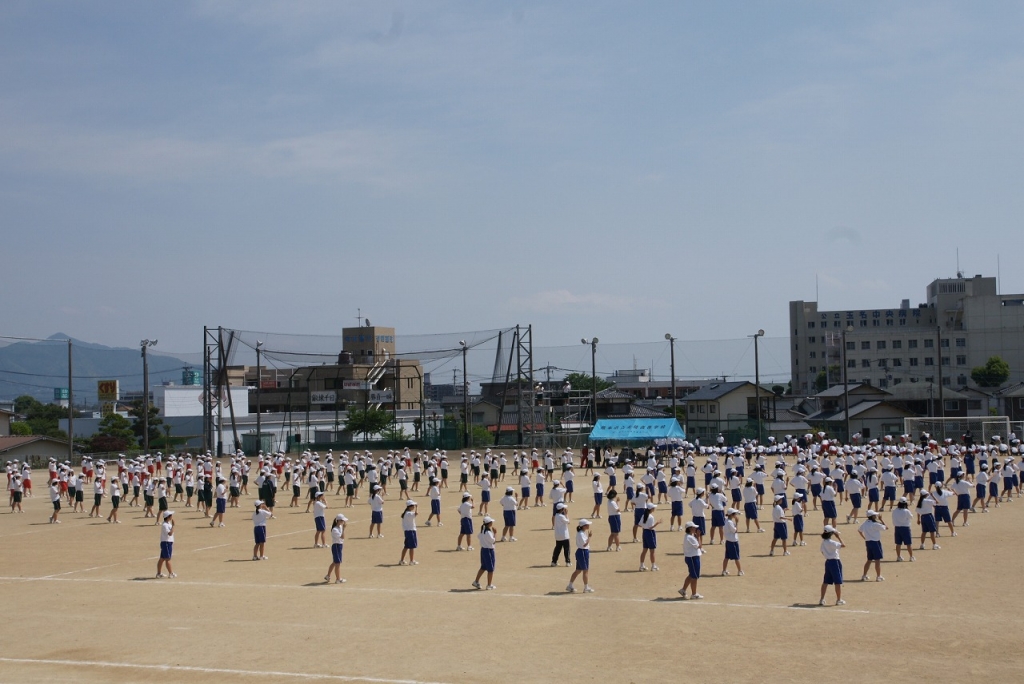 5/11(日)の体育大会に向けて、全校生徒で入場行進の練習をしているところです。