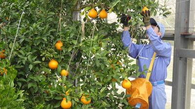 2年生の果樹専攻は不知火の収穫を丁寧に行いました。