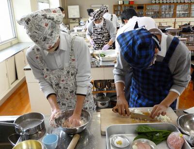 園芸科学科、造園科、ビジネスマネジメント科3年生では、「家庭総合」の授業で調理実習を行い、「包子饅頭」と「清川鶉蛋」を作りました。
