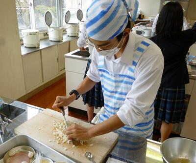 園芸科学科、造園科、ビジネスマネジメント科3年生では、「家庭総合」の授業で調理実習を行い、「包子饅頭」と「清川鶉蛋」を作りました。