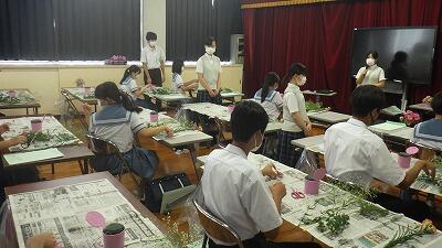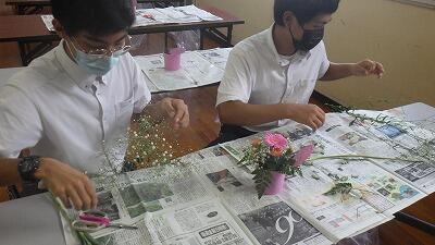 中学生は集中してラウンドタイプのアレンジを作成しました。