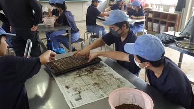一人あたり4~6種類の野菜の種を事前学習したまき方で行いました。