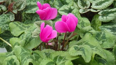 水田のイネも花を咲かせ、草花では以前播種したパンジーがかわいい芽を見せ、ちらほらとシクラメンの花が咲き始まました。