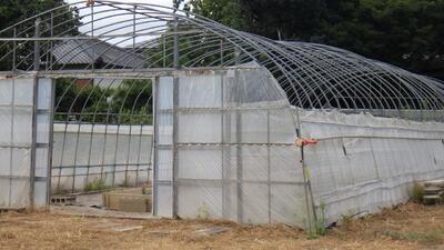 野菜はイチゴやスイカのビニルハウスにネットを張り、イチゴの苗を温室に避難させました。