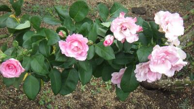 吹かれた木の葉が昇降口の隅に溜まり、花壇のバラが大きくゆれながらもきれいな花を咲かせていました。