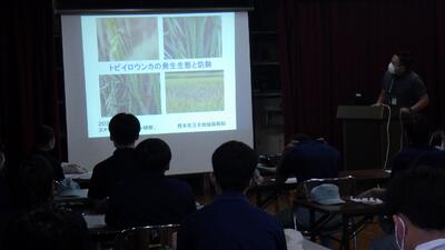 地域振興局農業普及振興課からウンカについての説明をいただき、その後農業用ドローンの現状と未来と題して講演を聴きました。