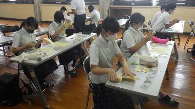 生徒交流会では「各校の家庭クラブ活動紹介」、体験講座では日本の伝統「折形」がありました。