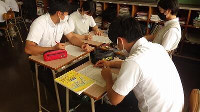 危機から脱出するために、必要なアイテム15個に大事だと思う順に1~15の数字をふり、なぜその順番になったのか、自分の考えを言い合い、班での順番を決めました。