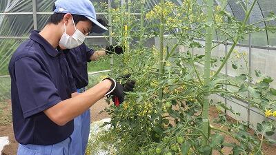 ハウスのトマトのわき芽かきと摘花を行いました。明日はしっかり田植えができそうで、楽しみです。