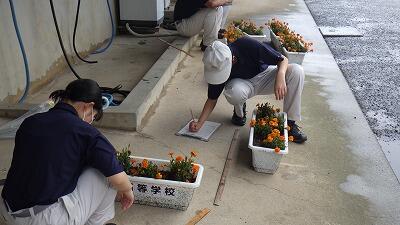 私たち草花専攻生は花壇を夏の花に植え替えました。