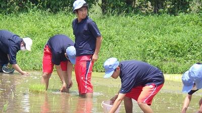 梅雨の晴れ間に、1年生の田植えを行いました。