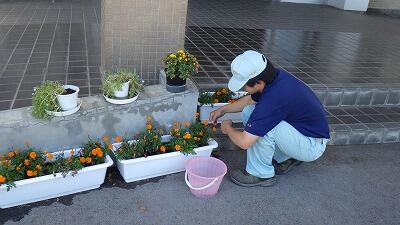 その後プランタのマリーゴールドの花摘みをし、きれいな玄関になりました。