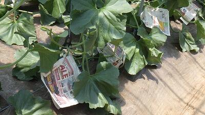 メロンには葉や茎に細かいとげがあり痛い思いをしながらの実習でした。
