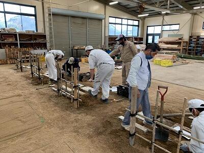 初めて作る竹垣もあるため、講師の竹原さんに教えていただきながら取り組みました。