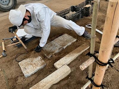 前回は四つ目垣まで終了していたので、今回は縁石と敷石の敷設にチャレンジしました。