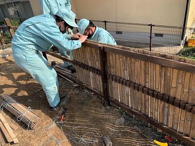 このたび造園同好会のメンバーで校内に竹垣を施工しました。