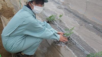 野菜専攻の春休み当番実習2日目でメロンの定植をしました。