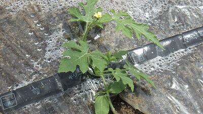 カボチャに接ぎ木した苗は、接合部分が弱いので最大に気を遣って優しく植え付けました。