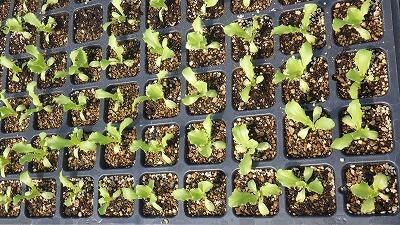 いよいよ新学期が始まります。農場では野菜の苗たちが新しいクラスの生徒たちを待っています。肥後グリーンメロンは8枚目の葉が出て、ひもで巻き上げていく時期になり、トウモロコシもかわいい芽を出しました。植え付けを待っている苗にネギとレタスがありますが、育苗土の違いによって成長が違っていることにはびっくりしました。