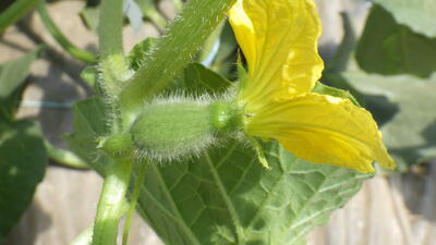 農場では肥後グリーンメロンが10枚目の子づるに雌花が咲き出しました。
