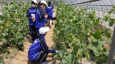 3限目は家政科学科の生物活用でもメロンの受粉と下葉2枚を取りました。